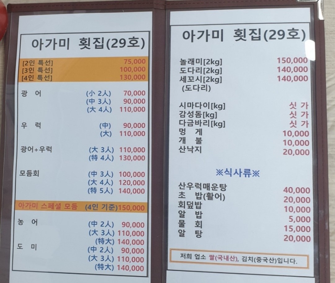 아가미 횟집 (29호)입니다.