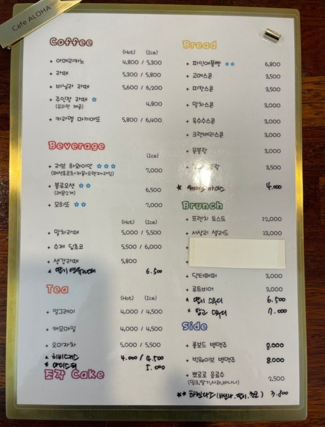 그리고 카페 중에 알로하 상호를