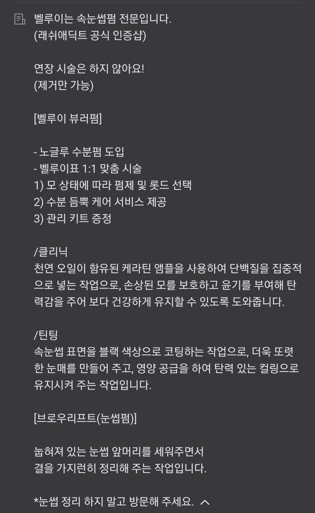 속눈썹 관리 한번 받아보시면 좋겠습니다.