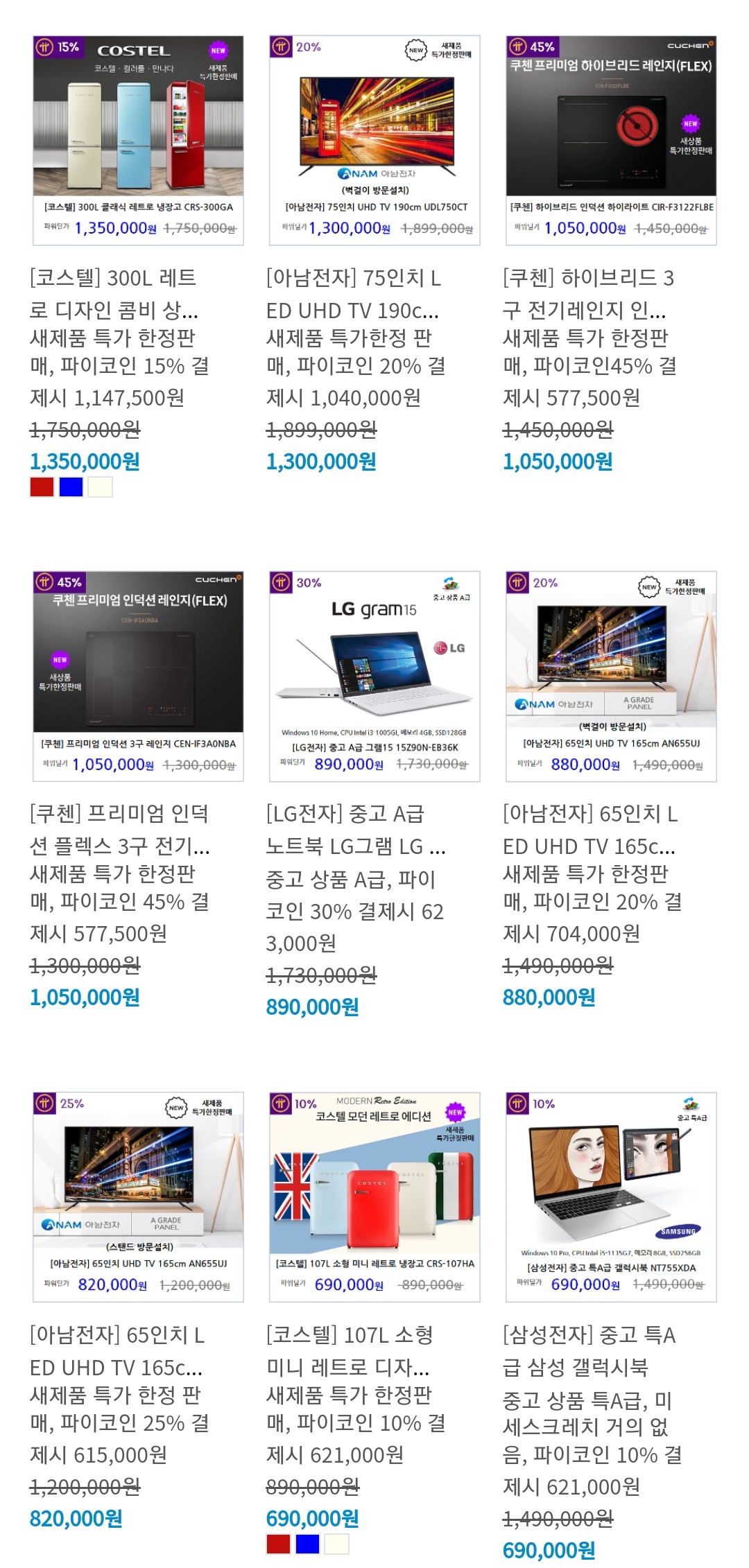 가격도 반품제품을 위주로