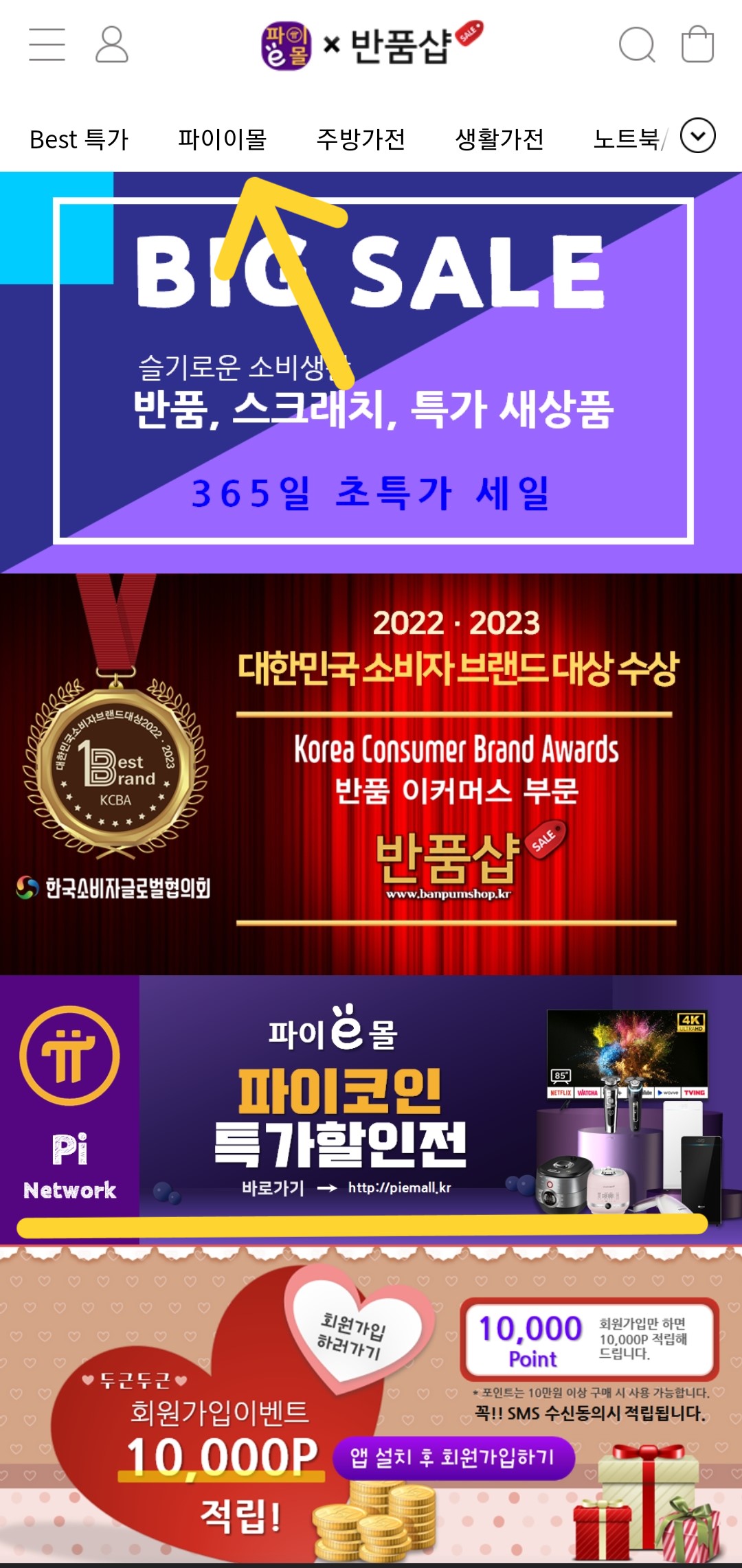 여기로 클릭해서 들어가셔서 앱으로 로그인하시거나, 검색엔진에서 "파이이몰"로 검색해서 들어가시면 됩니다.