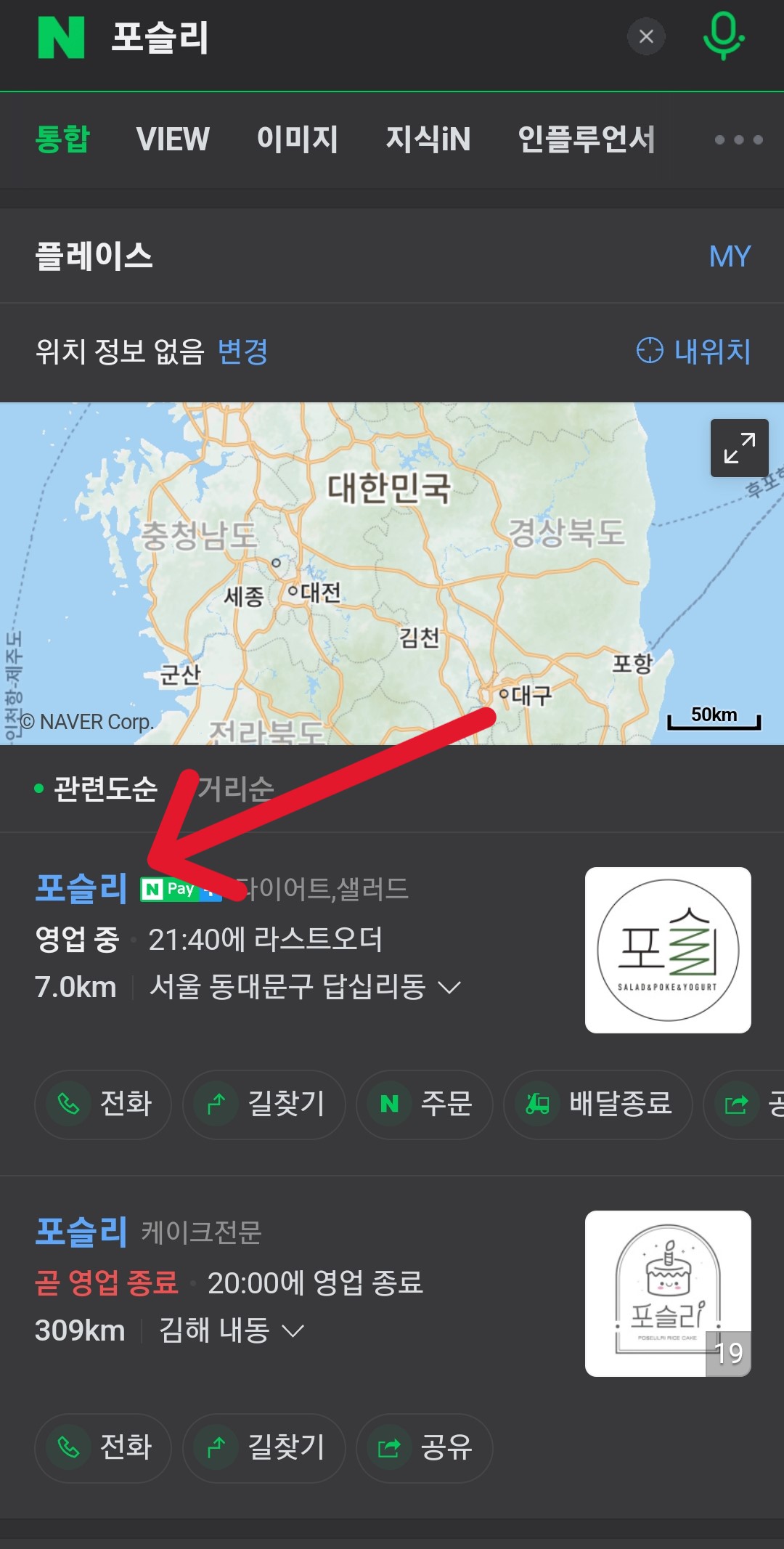 네이버에서 상호명으로 검색해 보니