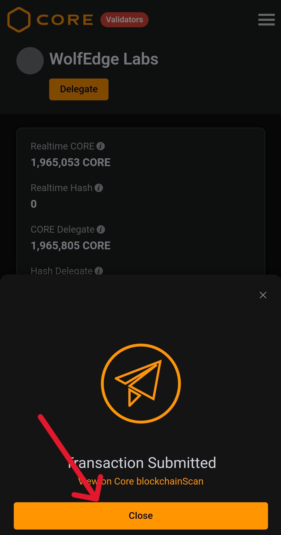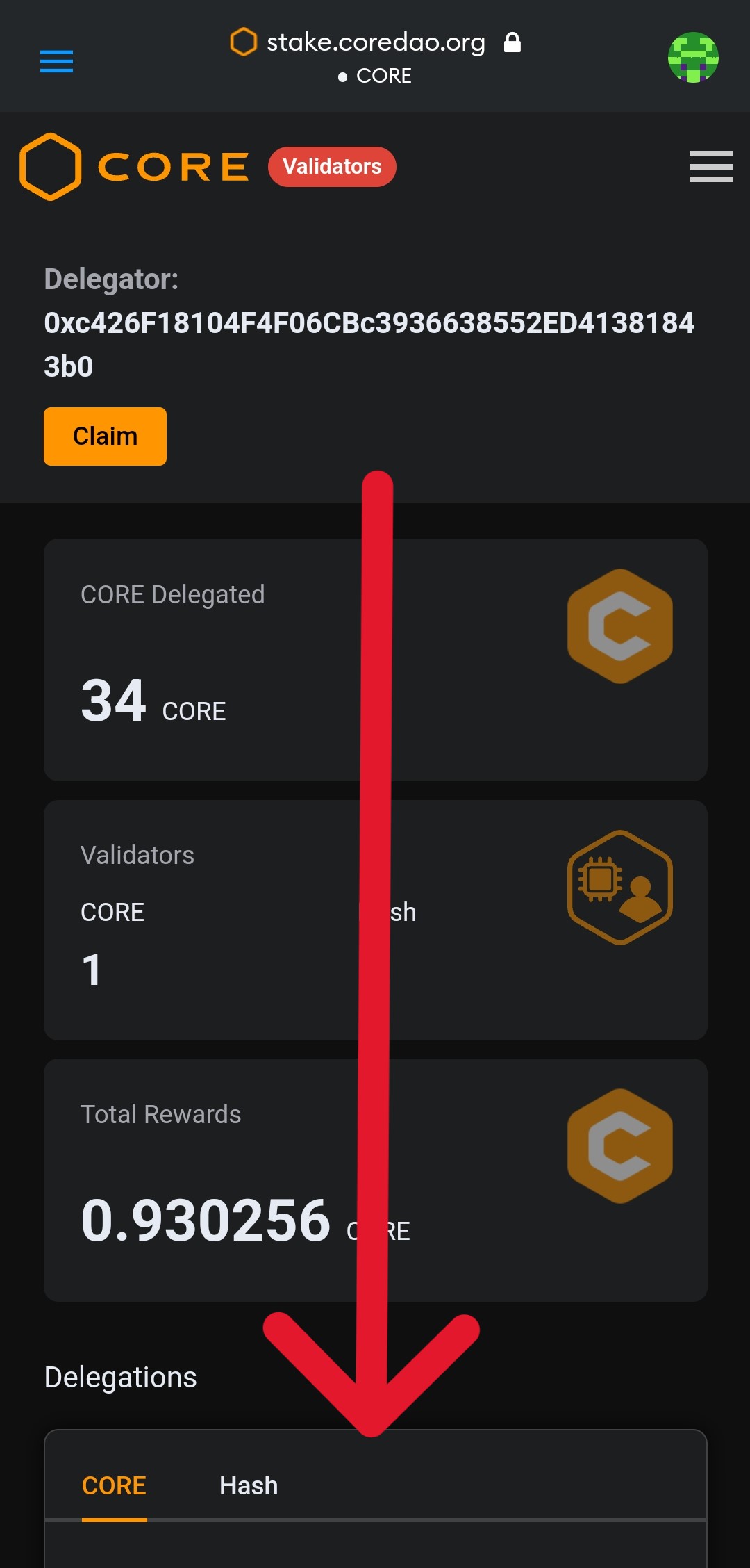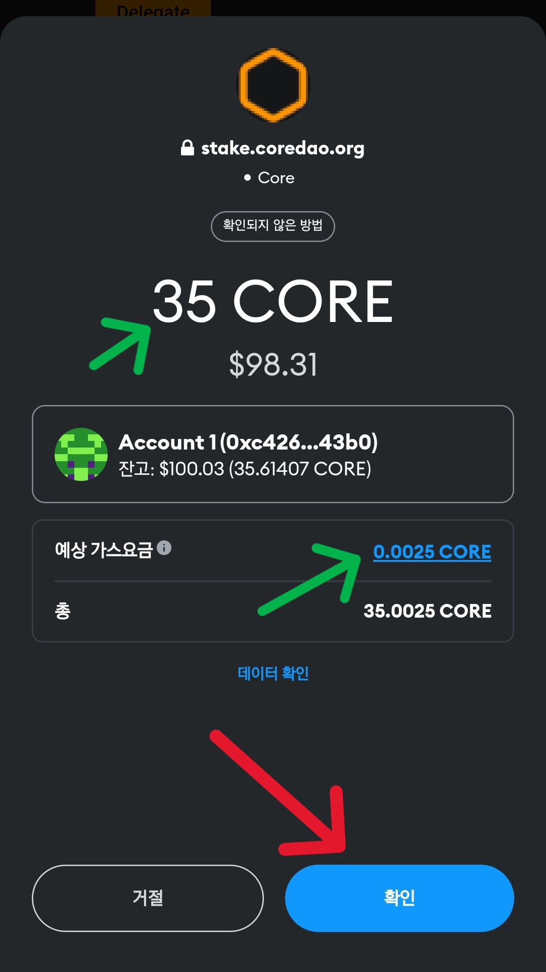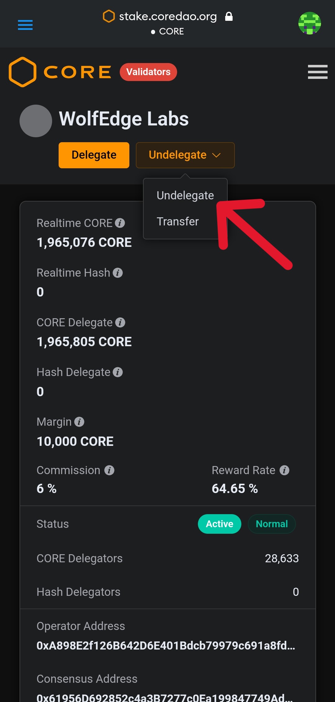 "undelegate"를 터치하게 되면