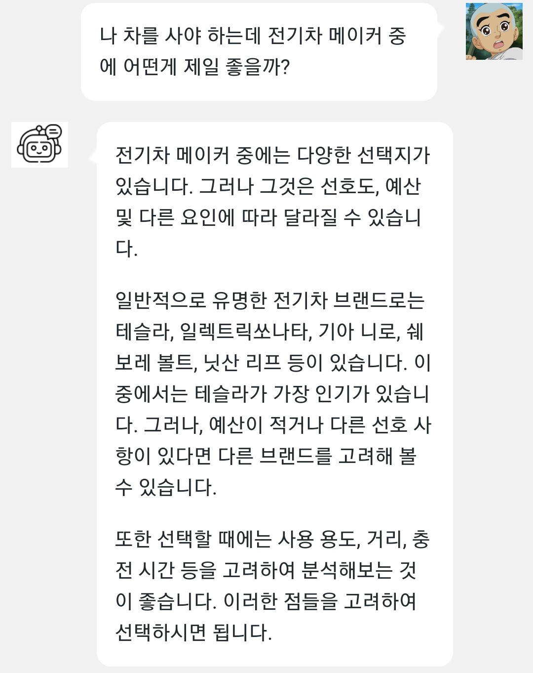 정도의 답변을 해줍니다.