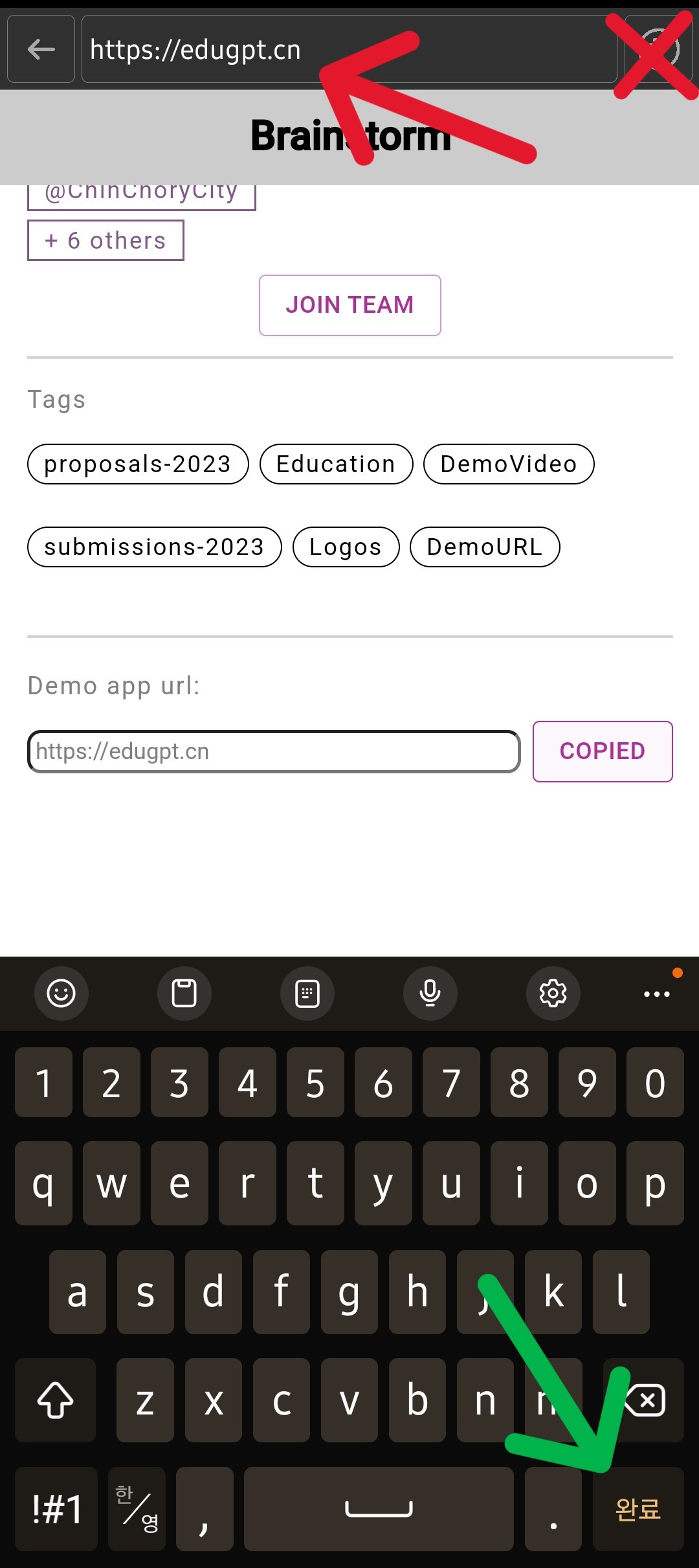 자판에 있는 "완료" 버튼