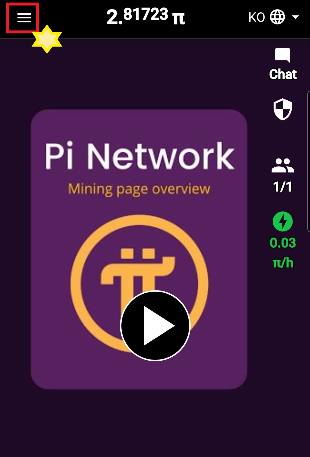파이 앱의 모든 기능은 삼단 가로바 버튼이라고 보시면 됩니다.
