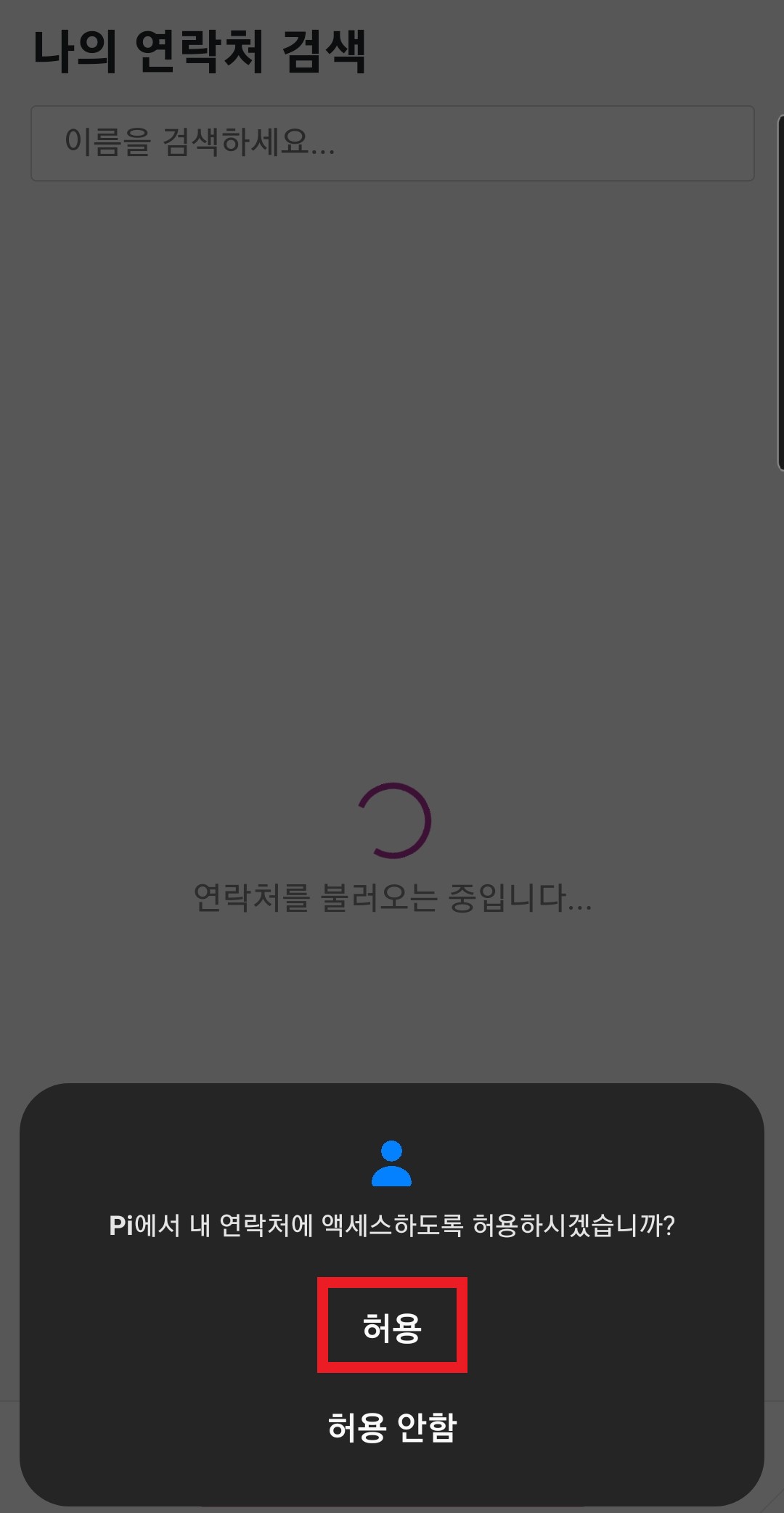 > 연락처에 있는 인원들 중 이미 파이를 설치한 인원이 표시됩니다.