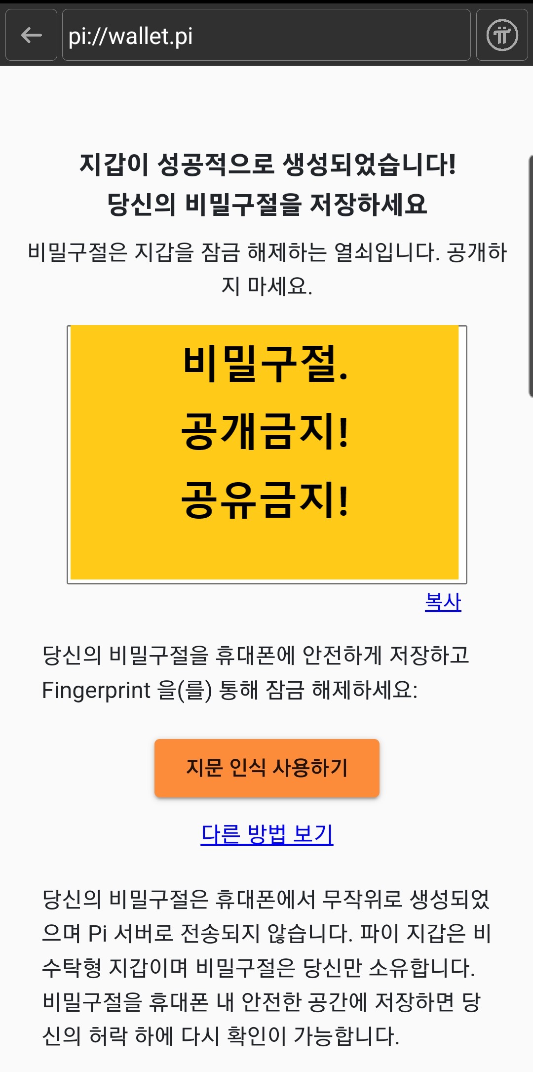 2. 파이 월렛 (진짜 지갑)