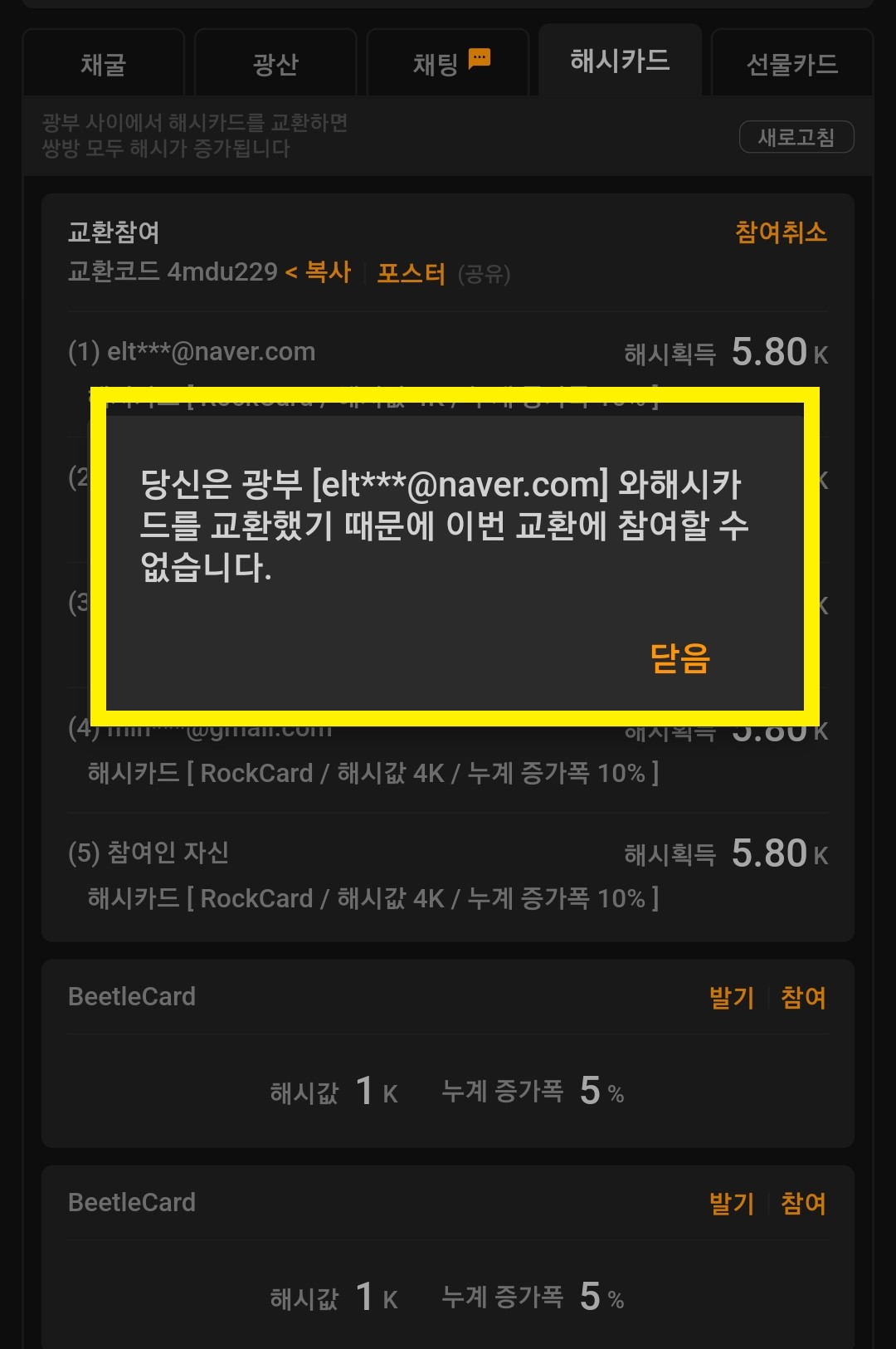 위와 같이 "참여 성공" 메시지가 뜹니다.