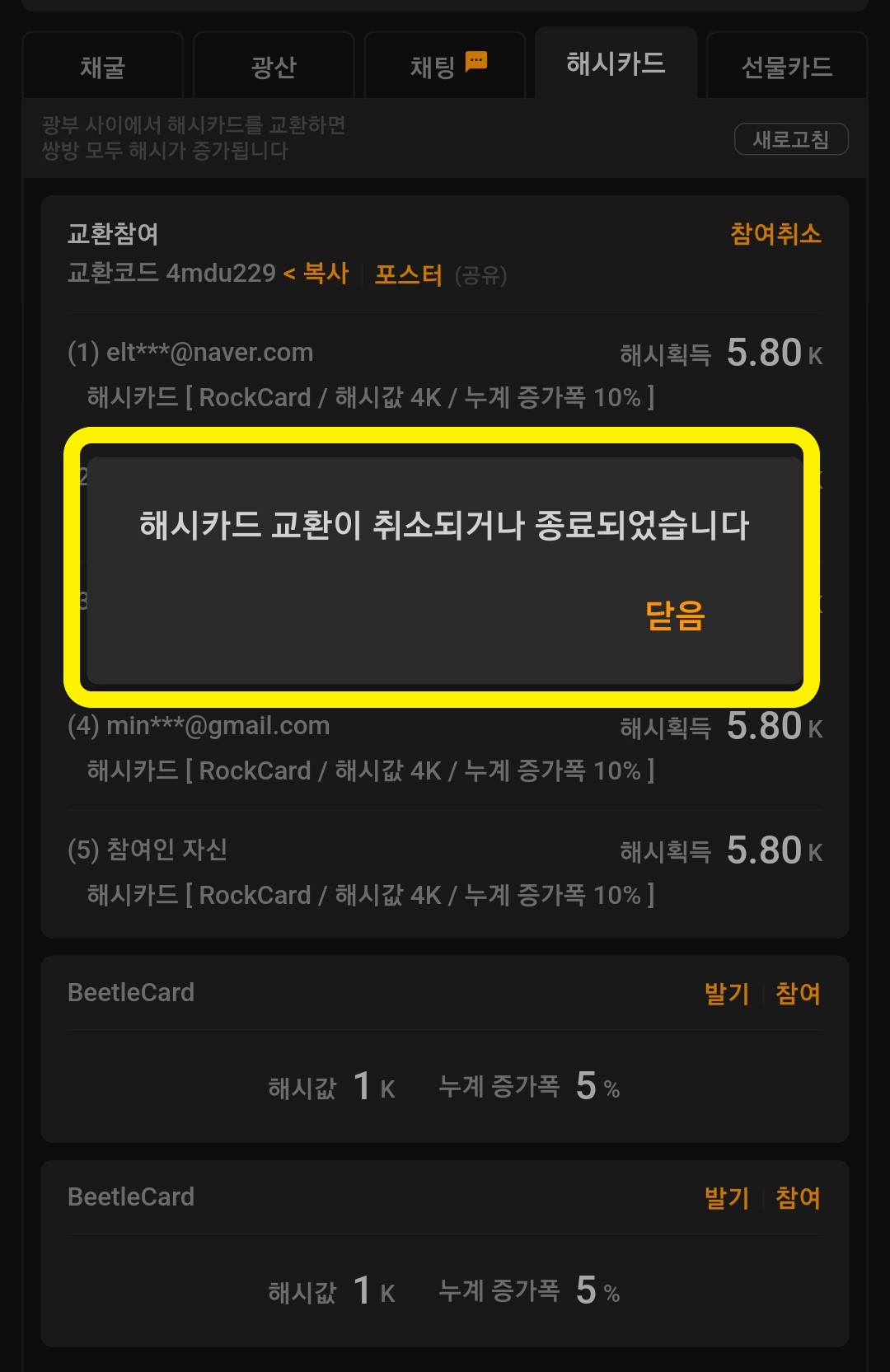 해시 카드는 20일 ~ 30일간 매일 1개씩 추가로 생겨납니다.