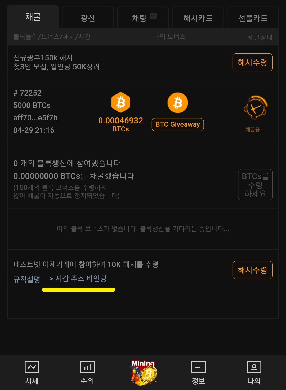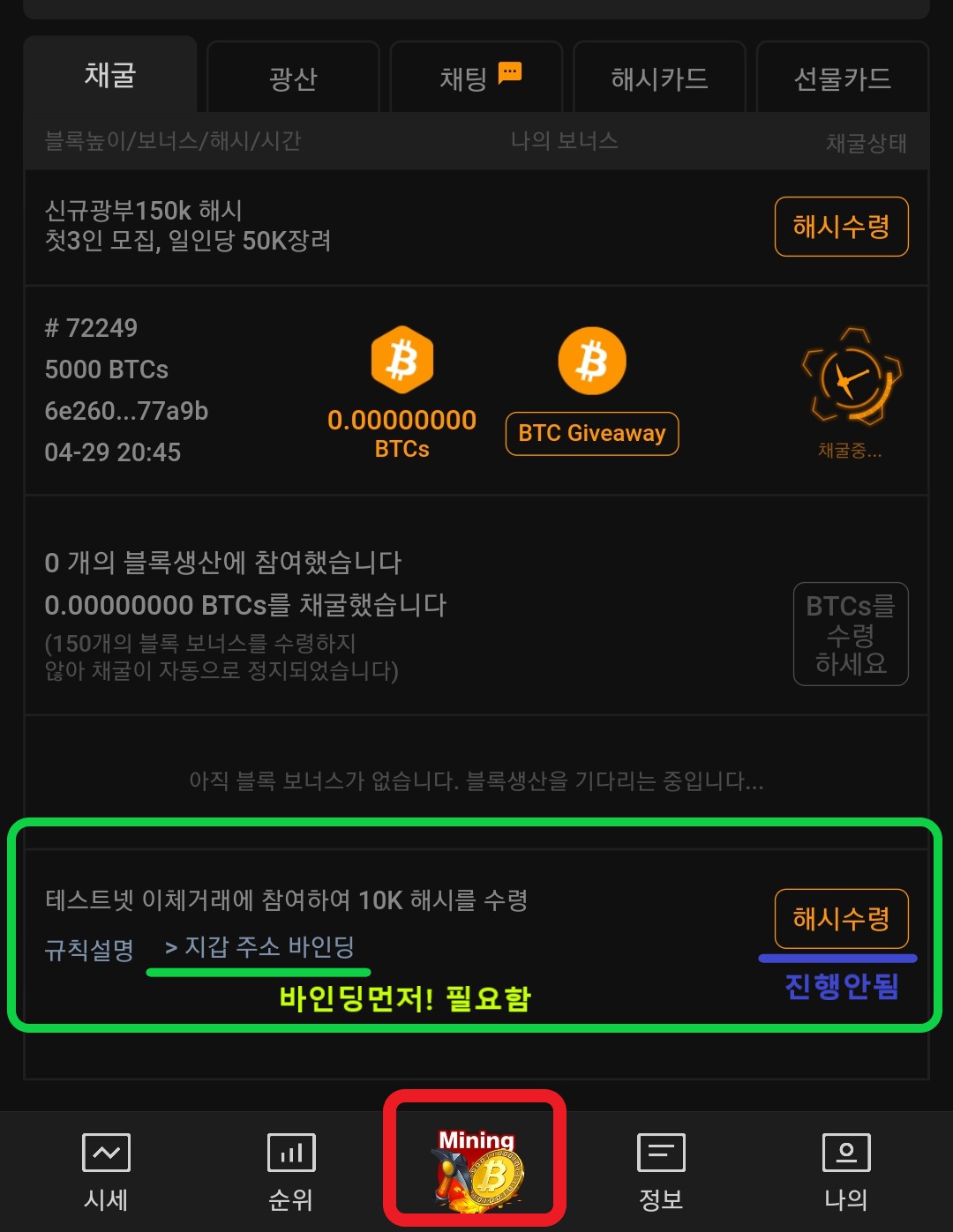 3탄. 사토시 테스트 넷 진행 > 채굴 속도 업! 보상받기