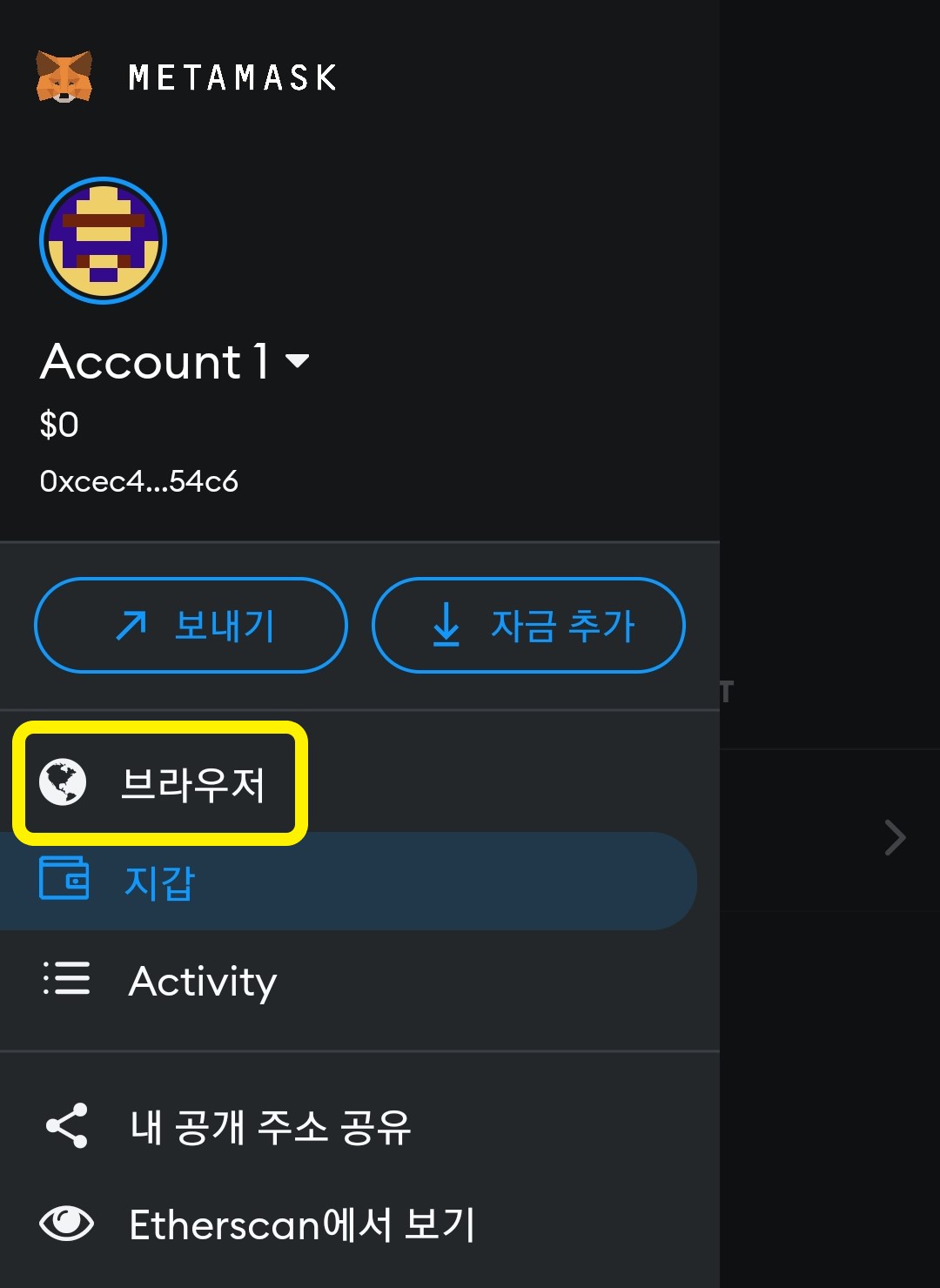 메타 마스크> 브라우저를 이용하세요!!