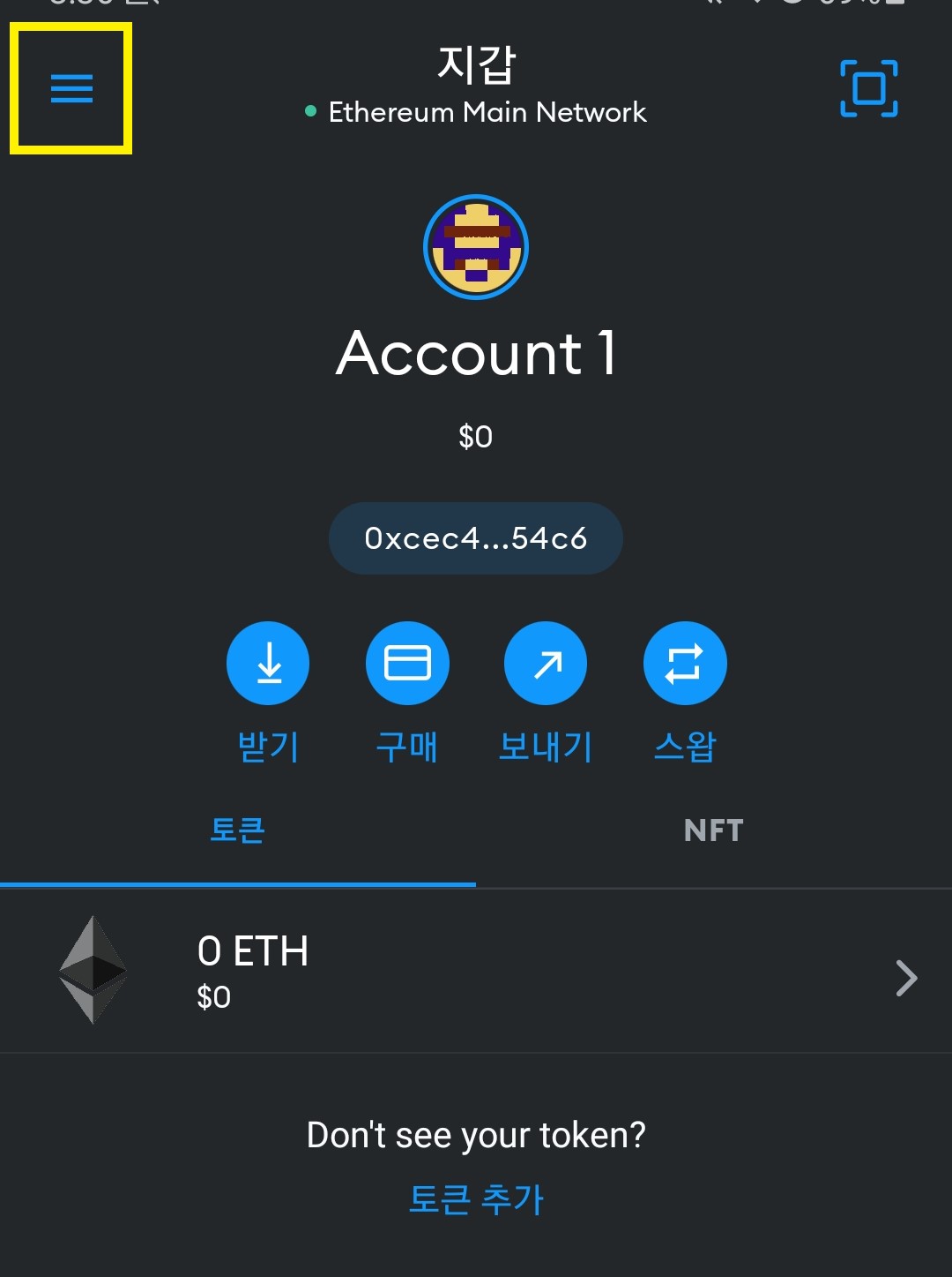 메타 마스크 초기화면으로 돌아옵니다.