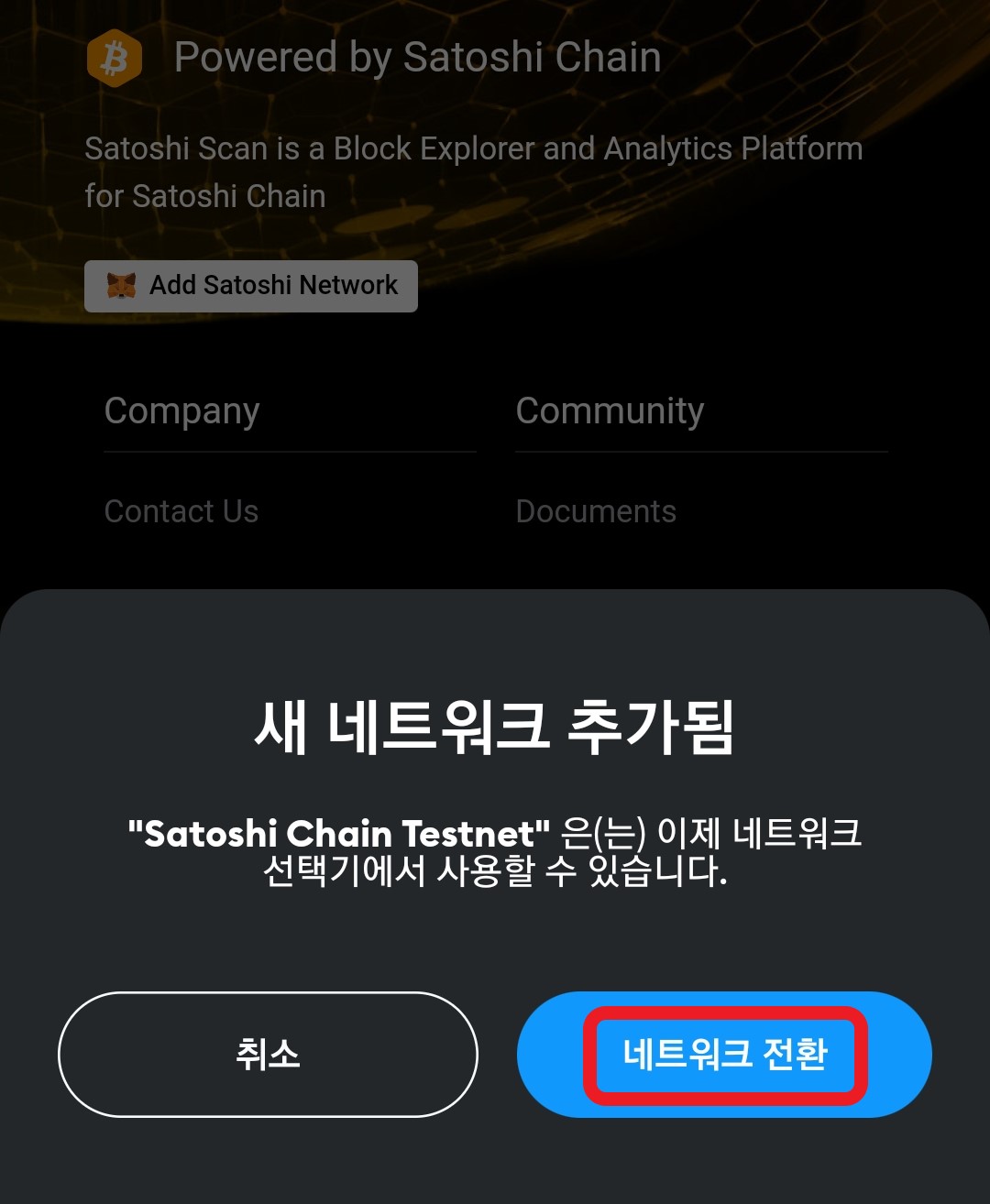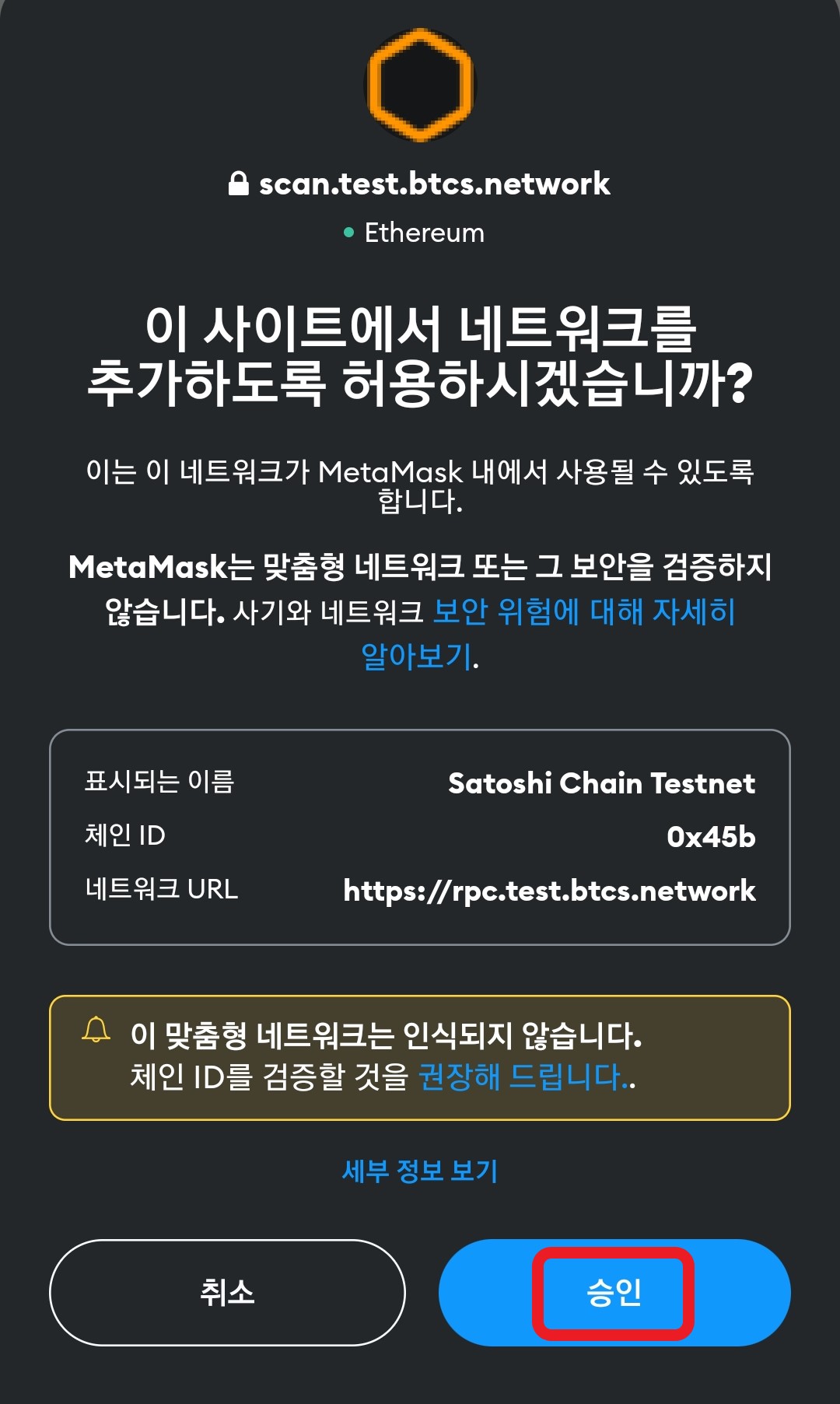 메타 마스크와 사토시 체인 테스트 넷과 네트워크