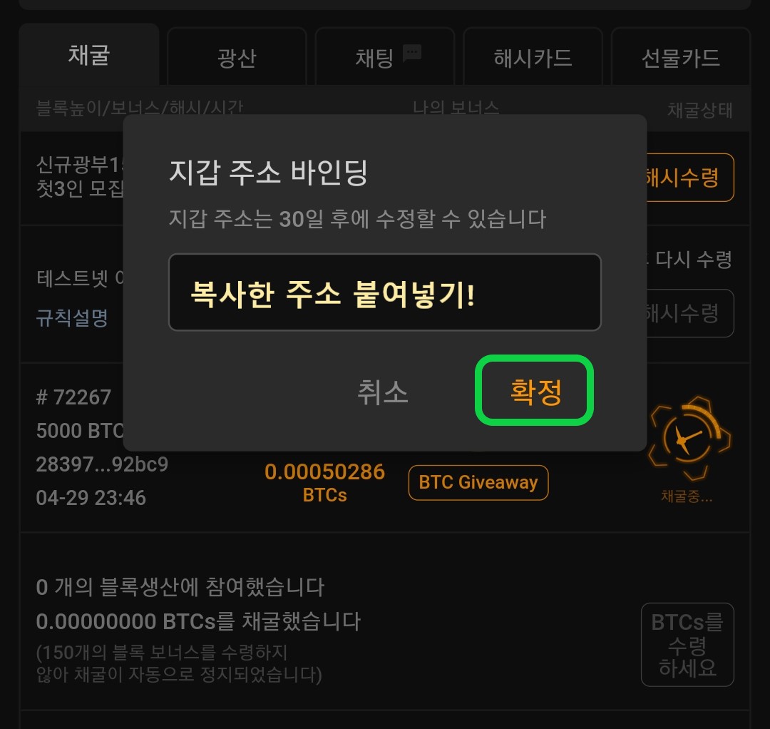 지갑 주소 바인딩 버튼을 눌러주세요!
