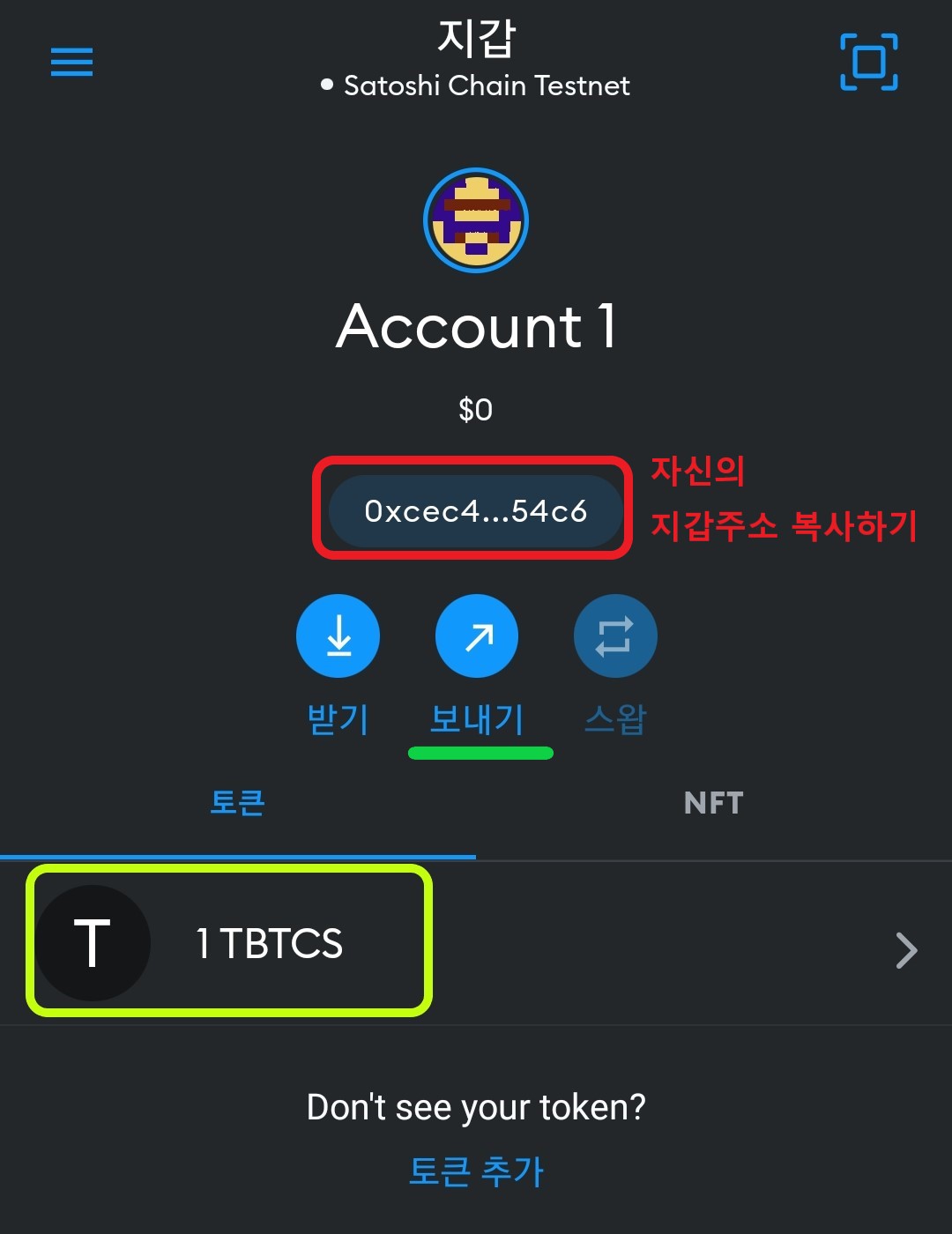 내 지갑 주소 복사해주세요.